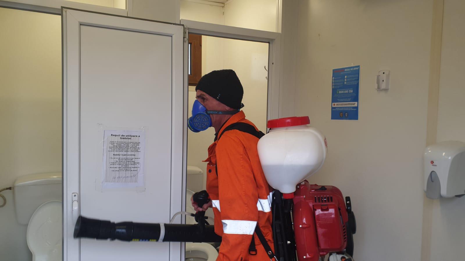 Angajații Salubritate Craiova au intervenit și aici pentru dezinfectarea tuturor spațiilor de vânzare, în lipsa comercianților și a vizitatorilor.