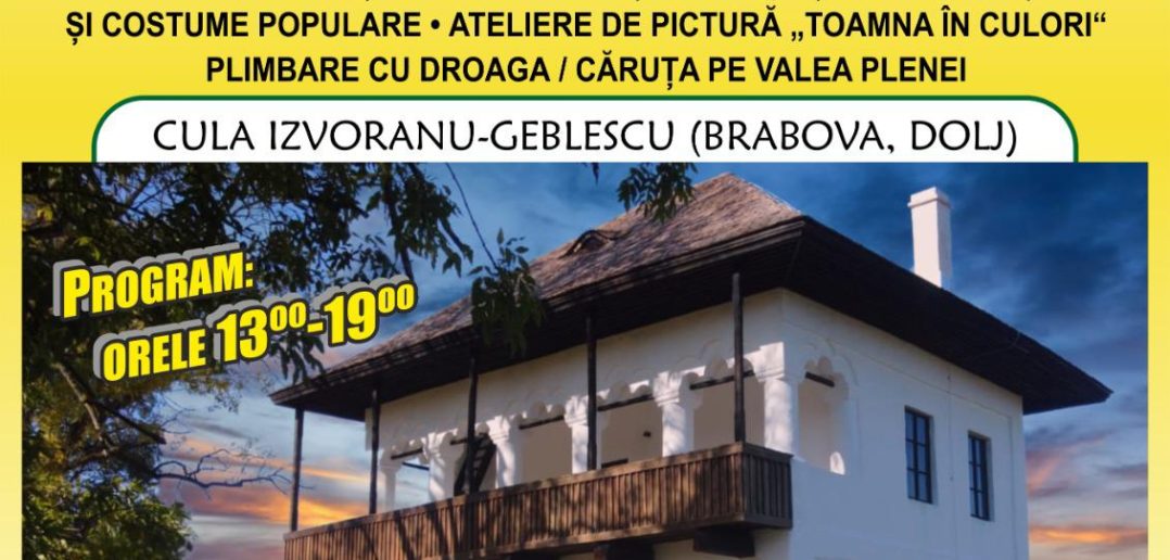 Muzeul Olteniei Craiova prin Secția de Etnografie cu sprijinul Consiliului Județean Dolj și în parteneriat cu Primăria și Consiliul Local Brabova, Centru de Creație Dolj, Școala „Ilie Martin” din Brabova, Școala Gimnazială „Eufrosina Popescu” din Botoșești-Paia și Școala Gimnazială Grecești organizează, în data de 09 noiembrie 2024, la Cula Izvoranu-Geblescu, prima ediție a Târgului de Toamnă.