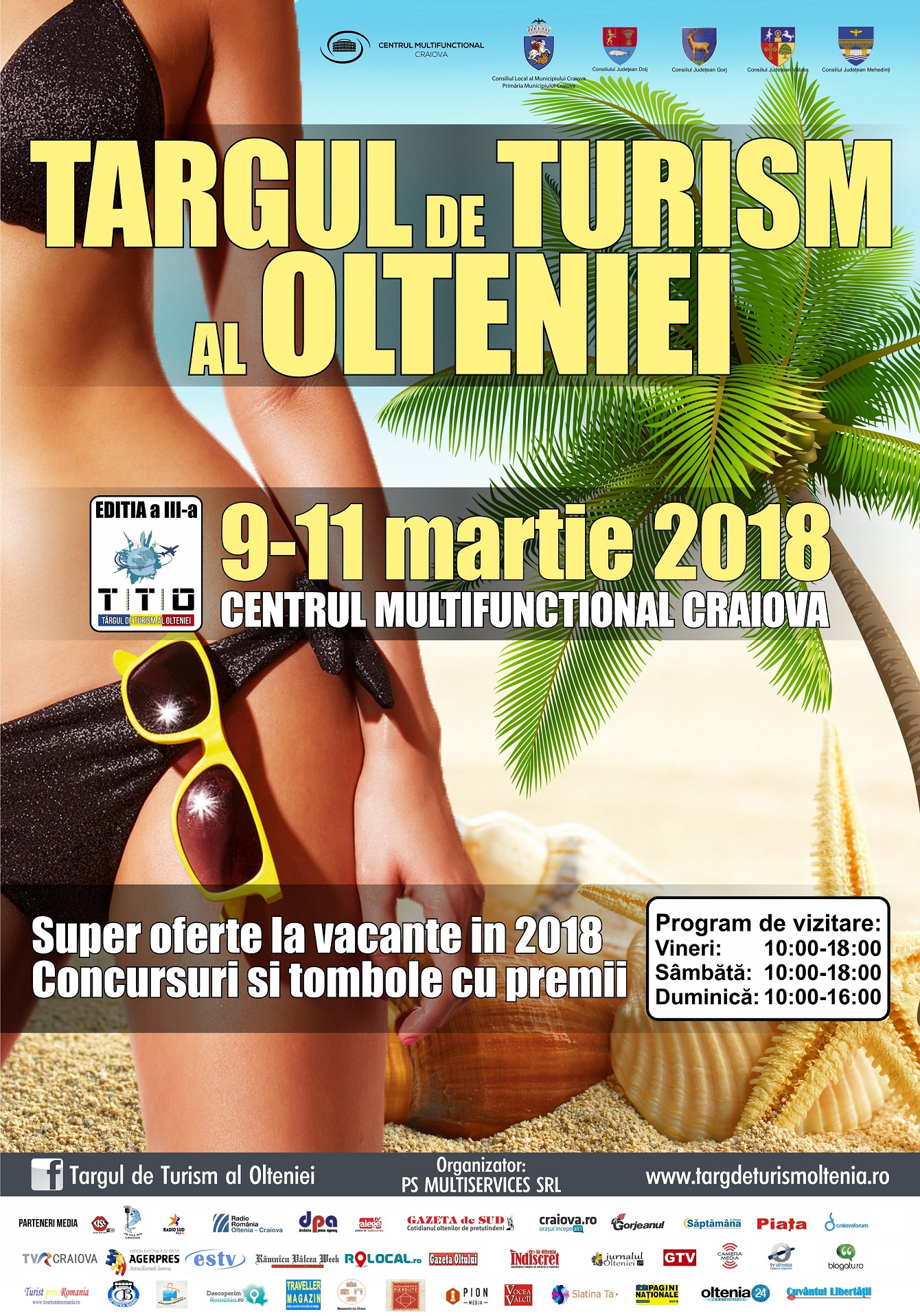 Targul de Turism al Olteniei editia a III-a se apropie cu pasi repezi. Evenimentul se va desfasura in perioada 9-11 martie 2018 in incinta Centrului Multifunctional Craiova.