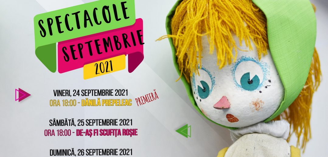 Sâmbătă, 25 septembrie 2021, de la ora 18:00 este programat spectacolul muzical De-aș fi Scufița Roșie, adaptare după Frații Grimm, de și cu Geo Dinescu și Marin Fagu, iar duminică, 26 septembrie 2021, la ora 11:00 aflăm Povestea celor trei purceluși, într-un spectacol de teatru interactiv, vesel și educativ, de și cu Geo Dinescu și Marin Fagu, pictură Iulia Goanță, desen afiș Ioana și Andrei Popescu.