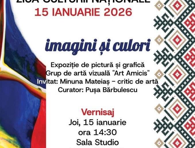 Teatrul pentru copii și tineret Colibri Craiova sărbătorește Ziua Culturii Naționale alături de artiștii plastici reuniți în Grupul de Artă Vizuală „Art Amicis“, o comunitate creativă din Craiova, ce promovează valorile artistice locale. Joi, 15 ianuarie 2026, la ora 14:30 va fi vernisată expoziția de pictură și grafică „Imagini și culori“, în Sala Studio a teatrului. Invitată este Minuna Mateiaș – critic de artă. Curatorul expoziției este Pușa Bărbulescu. Accesul este gratuit.