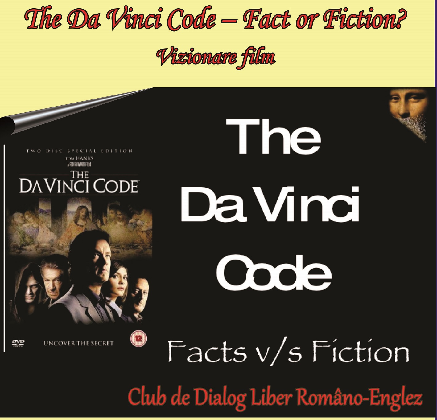 Tema acestei activități este „The Da Vinci Code”. La începutul întâlnirii, participanții vor viziona filmul „The Da Vinci Code-Fact or Fiction”, apoi vor discuta liber pe marginea subiectului abordat de film. Activitatea va fi coordonată de Adrian Jurge, voluntar american.