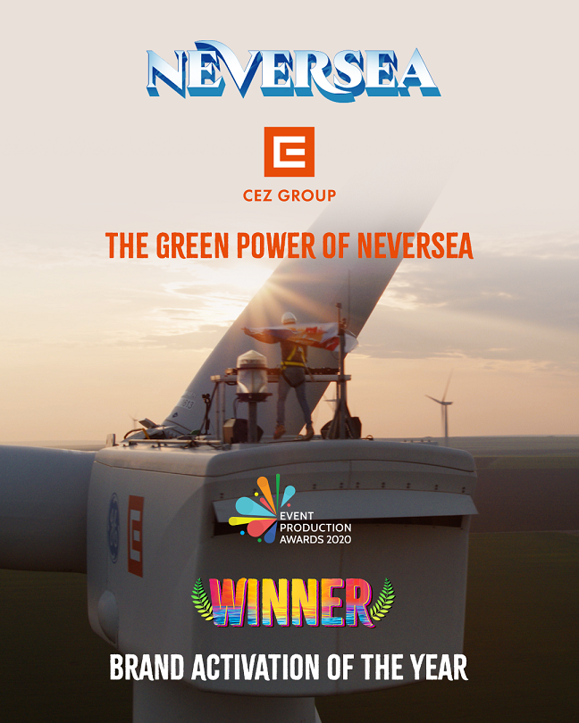 Initiativa Grupului CEZ in Romania si a festivalului Neversea de a promova energia verde in randul tinerei generatii printr-un experiment unic la nivel modial – primul DJ care a mixat de pe o turbina eoliana, la 100 metri inaltime – a fost premiata international in cadrul Event Production Awards 2020, cu premiul „Brand Activation of the Year”.