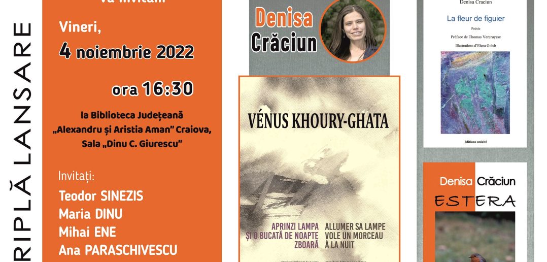 Biblioteca Județeană „Alexandru și Aristia Aman” organizează vineri, 4 noiembrie 2022, începând cu ora 16.30, în sala „Acad. Dinu C. Giurescu, o triplă lansare de carte, eveniment moderat de Petrișor Militaru.