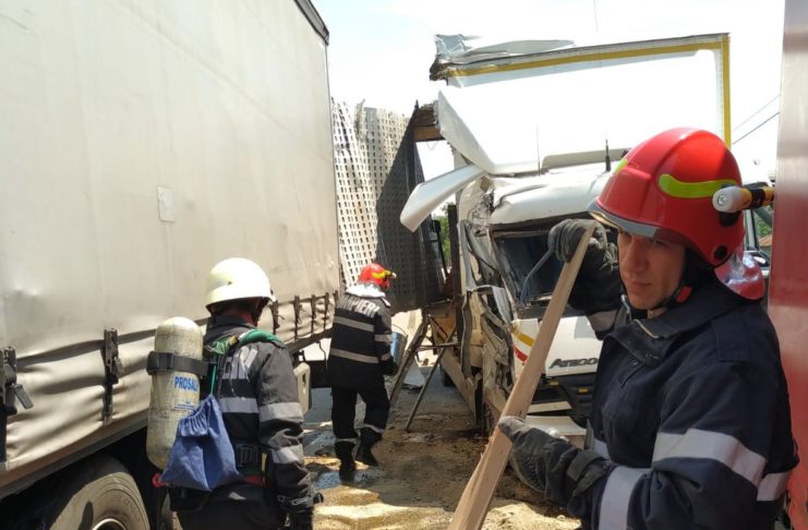 Doua autoutilitare și un autoturism au fost implicate, cu puțin timp în urmă, într-un accident în comuna Leu. Șoferul unei autoutilitare care transporta acid azotic nu a păstrat distanța față de vehiculul aflat în fața sa, a intrat în coliziune și a ricoșat frontal într-o altă autoutilitara care venea din sens opus. Din fericire, accidentul nu s-a soldat cu victime dar, într-unul din autovehicule se afla un recipient cu azot. Salvatorii de la ISU Dolj au deplasat la fața locului o autospecială de la Detasamentul 2, un echipaj de prim-ajutor,…