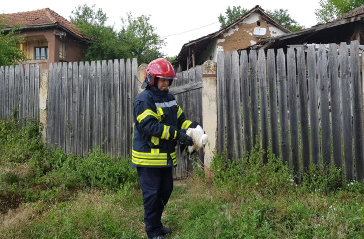 Pompierii doljeni au intervenit, ast[zi, pentru salvarea unui pui de barză care căzuse din cuim. Inițial, salvatorii și-au dorit sa-l urce pe acesta la loc în cuib, dar au constatat faptul că avea nevoie de îngrijiri medicale, moment în care au decis să-l ducă la Gradina Zoologică, pentru îngrijiri.