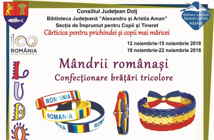 Biblioteca Județeană „Alexandru și Aristia Aman” organizează, în intervalele 12 – 25 și 19 – 22 noiembrie, în cadrul proiectului „Cărticica pentru prichindei și copii mai măricei”, acțiunea cu titlul „Mândrii românași-confecționare brățări tricolore”. Tradițiile, cu toate dimensiunile lor: împletituri, obiceiuri, datini și povești din vremuri imemoriale, transmit către generațiile viitoare modelul unei Românii autentice. În cadrul acțiunii, bibliotecarii îi vor ajuta și asista pe copii în activitatea de confecționare a brățărilor tricolore. Activitățile de proiect dedicate marcării Centenarului Marii Uniri de la 1918 sunt programate să se desfășoare în…