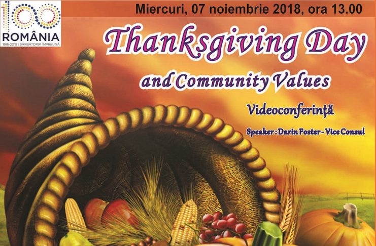 Biblioteca Județeană „Alexandru și Aristia Aman organizează miercuri, 07.11.2018, începând cu ora 13:00, în sala „Marin Sorescu”, videoconferința cu tema: „Thanksgiving Day and Community Values”, susținută de Darin Foster, Vice-Consul în cadrul Ambasadei SUA la București. La eveniment sunt așteptați să participe elevi de la Liceul Teologic Adventist din Craiova, însoțiți de profesorul Daniela Stancu Priciu. „Sunt ani buni de când organizăm Ziua Recunoștinței la bibliotecă. Prin intermediul American Corner avem acces, deopotrivă cititori și bibliotecari, la tot ceea ce înseamnă sărbători și valori americane. Există în Craiova un public…