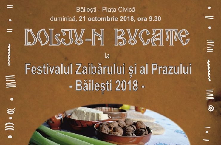 Festivalul Zaibărului şi al Prazului readuce Centrul Judeţean pentru Conservarea şi Promovarea Culturii Tradiţionale Dolj alături de Primăria Municipiului Băileşti, Consiliul Local Băileşti și Casa de Cultură „Amza Pellea“, duminică, 21 octombrie 2018, de la ora 9:30. Pentru al doilea an consecutiv, sărbătoarea băileșteană propune și expoziția – concurs cu preparate tradiționale „Dolju-n bucate“, la care și-au anunțat participarea localitățile: Calafat, Afumați, Giurgița, Izvoare, Galicea Mare, Perișor, Radovan. Anul trecut, participanții la evenimentul Dolju-n bucate, din cadrul Festivalului Zaibărului şi al Prazului, au fost premiați astfel: Calafat – premiul I,…