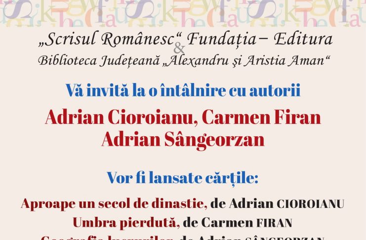 Biblioteca Județeană „Alexandru și Aristia Aman”, împreuna cu Fundația – Editura „Scrisul Românesc”, vă invită marti, 29 mai 2018, la ora 18, în sala „Academician Dinu C. Giurescu”, la un eveniment literar deosebit, o triplă lansare de carte. În prezența autorilor, vor fi lansate următoarele volume: – Aproape un secol de dinastie. Povestea monarhiei române de ieri, pentru tinerii de azi și de mâine, de Adrian Cioroianu – o carte în care profesorul Adrian Cioroianu reconstituie istoria dinastiei Hohenzollern. Cunoscut pentru o serie de lucrări temeinice dedicate istoriei României, Adrian…