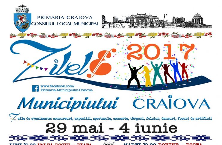 Organizator principal: PRIMĂRIA ȘI CONSILIUL LOCAL MUNICIPAL CRAIOVA Sponsori: Vodafone, Tipografia Signum, Agenția de Turism Mapamond, Stil Media, Nitela & Partners Parteneri media: Oltenia 3 TV, craiovaforum.ro, GTV, Gazeta de Sud, Radio Sud, www.craiova.ro, Camera Media, Lupa, Cuvântul Libertăţii, Craiova Cetatea Băniei, TVR Craiova, Radio România Oltenia-Craiova, Jurnalul Olteniei, Radio Horion, Indiscret în Oltenia, Oltenia24.ro, Alege TV, Republica TV, oltenaşul.ro, Săptămâna în Oltenia, Cronica Olteniei, Radio Crazy, Z Tv, Blogatu.ro, Laurenţiu Nica. Luni, 29 mai 2017 10.00 – 18.00 – Casa Băniei – Esplanadă (Secția de Etnografie a Muzeului Olteniei) “Satul românesc…