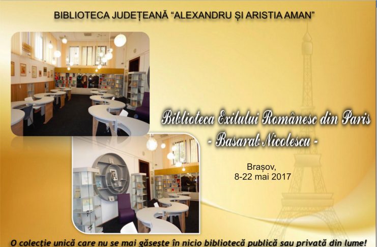 Vernisaj comun al Bibliotecii Județene „Alexandru și Aristia Aman” Dolj și Bibliotecii Județene “George Barițiu” Brașov, la Brașov, a expoziției de postere înfățișând cărți și documente, reviste și afișe deținute de „Biblioteca Exilului Românesc din Paris – Basarab Nicolescu”. Expoziția este organizată la sediul central al ,Bibliotecii Județene “George Barițiu” Brașov (Bd. Eroilor nr. 35, etaj I) și va fi deschisă publicului timp de două săptămâni. Basarab Nicolescu este o personalitate de seamă a științei, culturii și spiritualității românești, fizician și filosof cunoscut prin conceptul de transdisciplinaritate, pe care l-a dezvoltat…