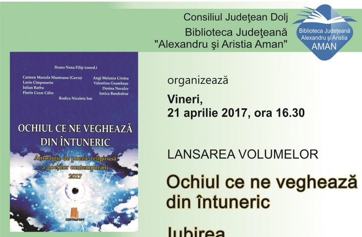Ochiul ce ne veghează din întuneric și Iubirea, o armă letală? sunt cele două volume ale autoarei Ileana Nana Filip care vor fi lansate, vineri. Biblioteca Județeană „Alexandru și Aristia Aman”, gazda evenimetului, așteaptă iubitorii de artă, începând cu ora 16:30, în sala Acad. Dinu C. Giurescu.