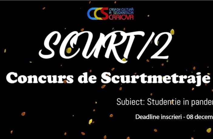 Casa de Cultură a Studenților din Craiova organizează prima ediție a competiției de scurtmetraje “Scurt/2”, proiect menit să dezvolte spiritul creativ în rândul tinerilor. Prin intermediul acestui proiect Casa de Cultură a Studenților își propune să îi provoace pe tineri să privească mereu partea plină a paharului și să își valorifice potențialul creativ în contextul pandemiei de COVID-19. Subiectul principal ce va fi abordat în cadrul filmelor de scurt metraj este impactul epidemiei de Sars Cov 19 în viața tinerilor. Actiunea scurtmetrajelor se desfășoară în timpul pandemiei și ilustrează momente/situații/crize…