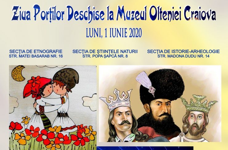 Ziua Internațională a Copilului este marcată luni, 1 iunie 2020, de către Muzeul Olteniei Craiova, prin organizarea evenimentului “Ziua Porţilor Deschise”, context în care publicul vizitator va beneficia de acces gratuit, în intervalul orar 09.00 – 17.00, în toate cele trei locații expoziționale ale muzeului: Secția de Istorie-Arheologie (str. Madona Dudu, nr.14), Secția de Ștințele Naturii (str. Popa Șapcă, nr.8), Secția de Etnografie- Casa Băniei (str.Matei Basarab, nr.16). Această manifestare se înscrie în preocupările constante ale Muzeului Olteniei Craiova de promovare a patrimoniului cultural naţional şi beneficiază de sprijinul Consiliului…