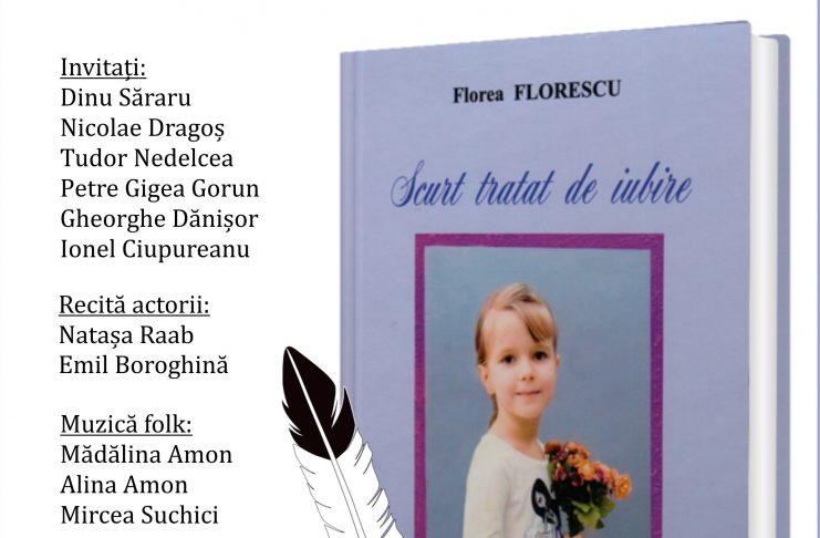 Biblioteca Județeană „Alexandru și Aristia Aman” găzduiește vineri, 21 februarie 2020, începând cu ora 16:00, în sala „Acad. Dinu C. Giurescu”, lansarea volumului „Scurt tratat de iubire”, autor Florea Florescu. La eveniment sunt așteptați să participe: Dinu Săraru, Nicolae Dragoș, Tudor Nedelcea, Petre Gigea Gorun, Gheorghe Dănișor și Ionel Ciupureanu. Alături de evenimentul editorial, evenimentul reunește și recitalurile actorilor Natașa Raab și Emil Boroghină, dar și mai multe multe artistice de muzică folk susținute de Mădălina Amon, Alina Amon și Mircea Suchici. „Surpriză mare Florea Florescu! Limbaj modern, mai mirosind…