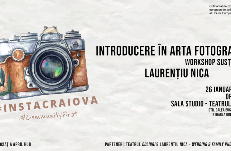 Pe 26 ianuarie 2020, începând cu ora 18:00, în Sala Studio a Teatrului Colibri, vă așteptăm la primul workshop din cadrul ediției a V – a #InstaCraiova, Introducere în arta fotografică, workshop susținut de Laurențiu Nica. „Îmi place fotografia. Și mă bucur că jobul meu este fotografia. Am plecat de la pasiunea de face fotografii de peisaj și am ajuns să iubesc oamenii, deși aveam o teamă în a mă apropia de străini. Am fost în mijlocul evenimentelor ca foto-jurnalist, trecând de la diverse publicații locale și naționale, la reviste…