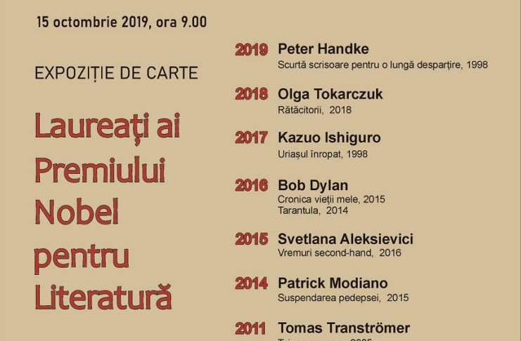 Biblioteca Județeană „Alexandru și Aristia Aman” organizează, în perioada 15 – 22 octombrie, în sala „Acad. Dinu C. Giurescu”, Expoziția de carte cu titlul „Laureați ai Premiului Nobel”. În cadrul expoziției sunt etalate mai multe volume realizate de opt dintre ultimii laureați ai Premiului Nobel pentru Literatură. Astfel, cei care vor ajunge la bibliotecă vor avea ocazia să ia contact cu operele semnate de Peter Handke, Olga Tokarczuk, Kazuo Ishiguro, Bob Dylan, Svetlana Aleksievici, Patrick Modiano, Tomas Tranströmer și Herta Müller. „Premiul Nobel pentru Literatură vine să încununeze o bogată…