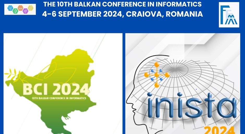 Universitatea din Craiova organizează, în perioada 4-6 septembrie 2024, două manifestări științifice importante pentru comunitatea academică: „International Conference on INnovations in Intelligent SysTems and Applications (INISTA)” și „The 10th Balkan Conference in Informatics (BCI’2024)”.