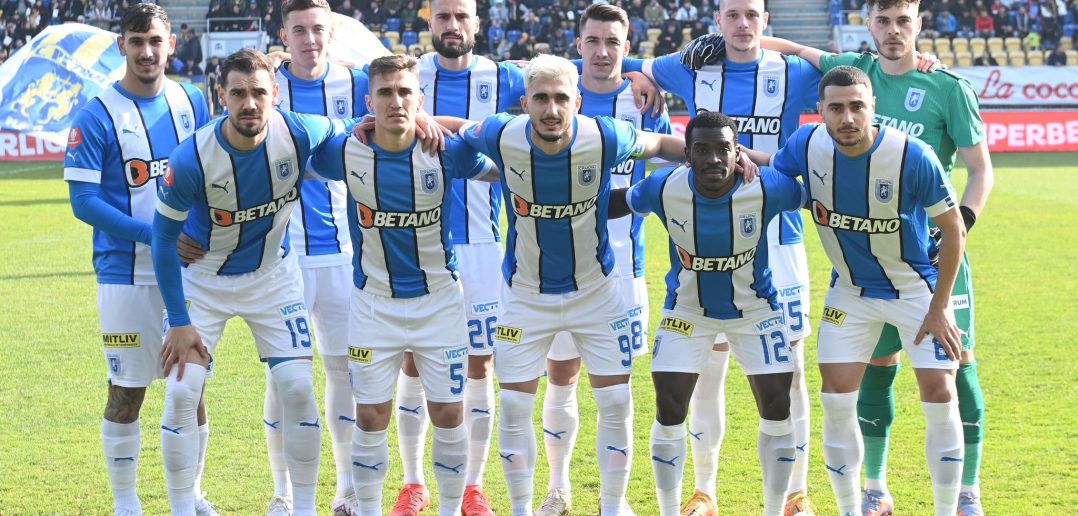 Universitatea Craiova câștigă partida din această dupăamiază de pe Stadionul Ilie Oană.