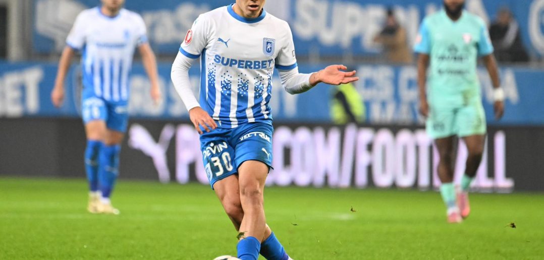 Min. 36 – 1-1 – Universitatea Craiova reușește să readucă egalitatea pe tabelă prin golul lui Oleksandr Romanchuk din pasa lui David Matei