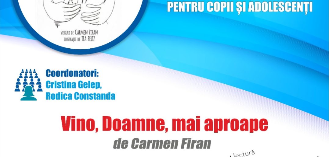 Cartea propusă de spre lectură este „Vino, Doamne, mai aproape”, autor Carmen Firan, ilustrator Tia Peltz.