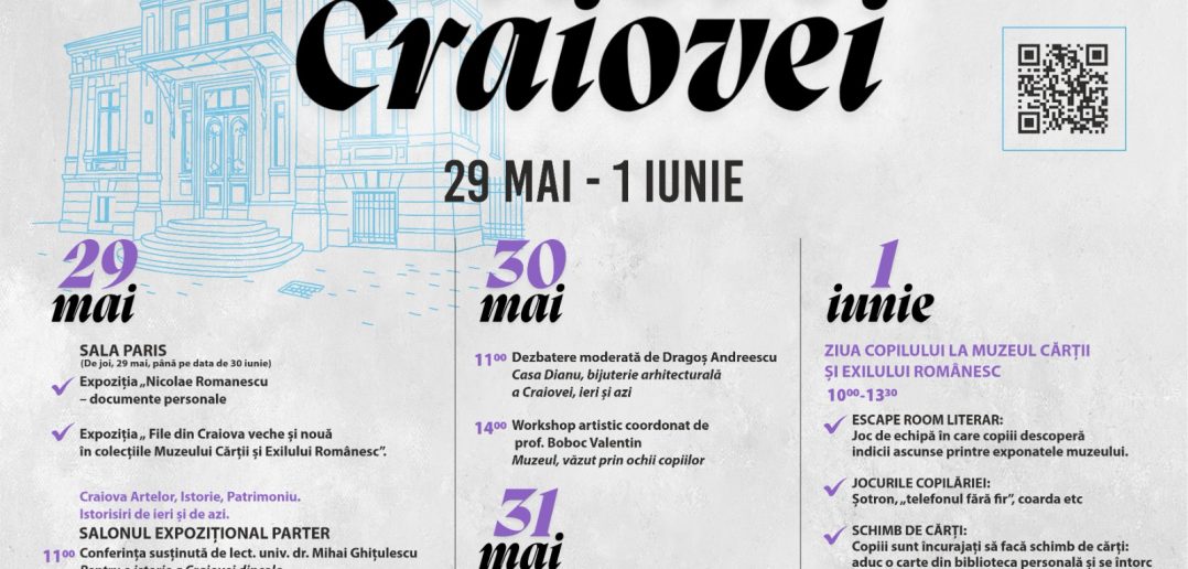 Muzeul Cărții și Exilului Românesc participă la cea de-a XXVIII-a ediție a Zilelor Craiovei cu activități pentru publicul de toate vârstele, organizate în fiecare dintre cele patru zile ale evenimentului.