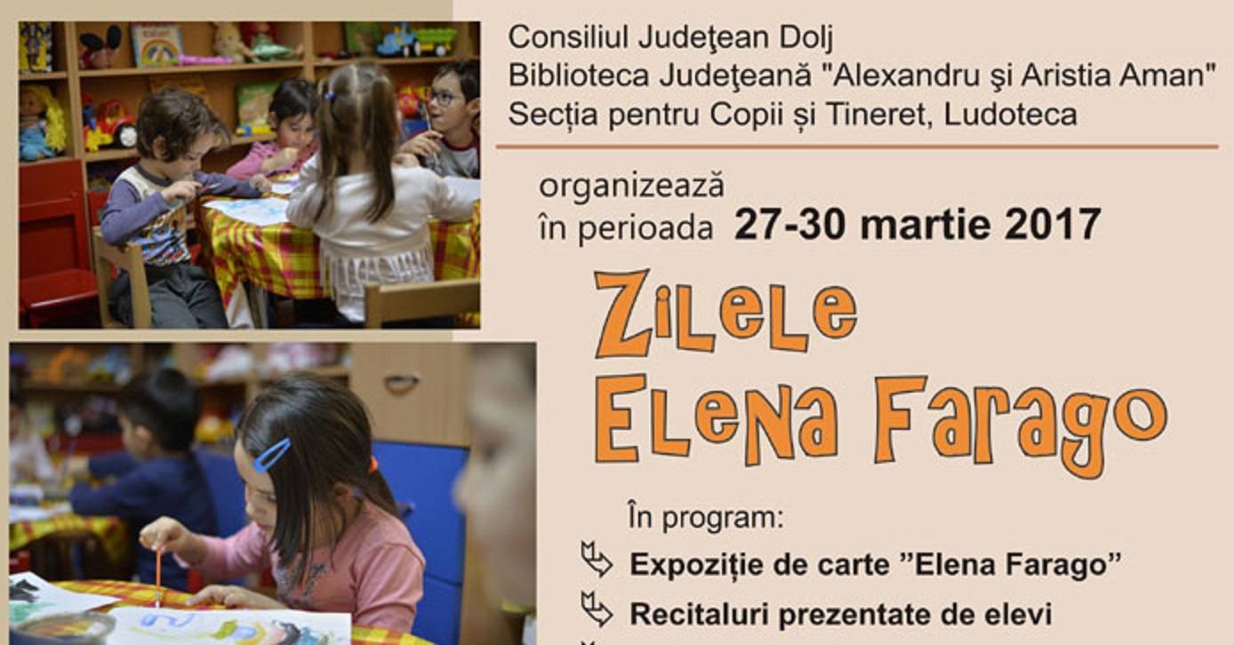 În perioada 27–30 martie, Biblioteca Judeţeană Alexandru şi Aristia Aman organizează Zilele Elena Farago, dedicate împlinirii a 139 ani de la naşterea poetei Elena Farago, scriitoare, traducătoare şi Cetăţean de onoare al oraşului Craiova, precum si directoarea Fundației Aman. Având o tradiţie de peste 30 ani, manifestarea atrage de obicei sute de şcolari şi preşcolari, însoţiţi de cadre didactice.