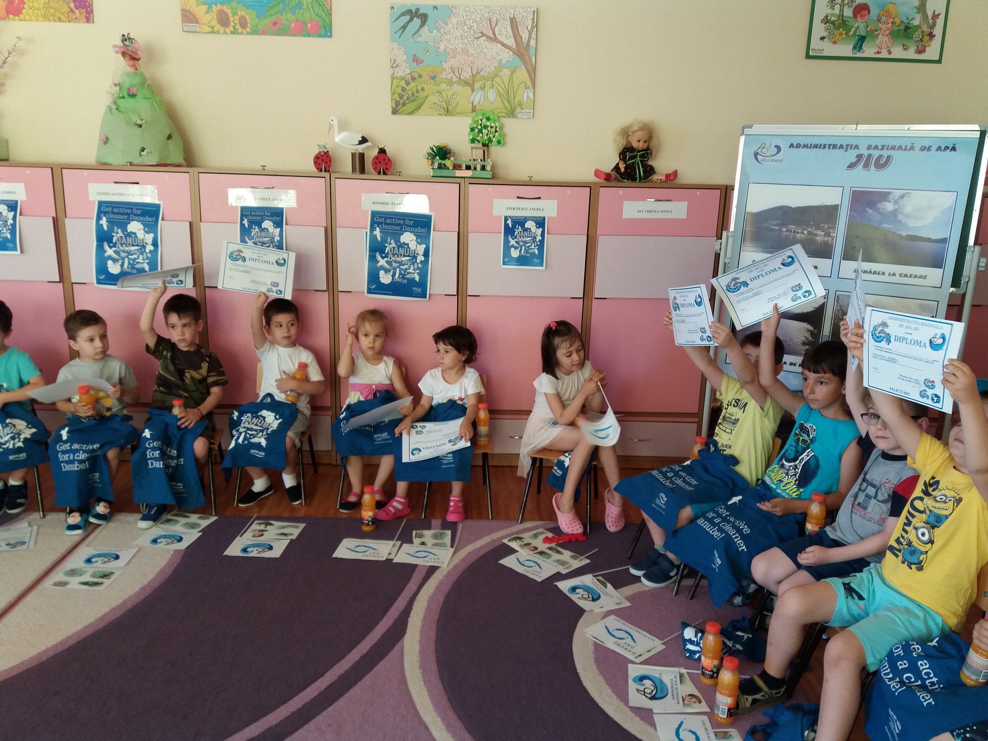 În cadrul unei lecții deschise preşcolarii coordonaţi de către educatorul Viorica Barbu au putut afla de la specialiștii Administrației Bazinale de Apă Jiu amănunte despre bătrânul fluviu și cât de important este acesta pentru statele riverane. Prichindeii au dat dovadă de pricepere și maturitate în momentul în care li s-a explicat despre lucrurile bune și cele mai puțin neplăcute aduse de acest mare fluviu. Astfel, au fost informați cu privire la datele principale ale Dunării, de unde izvorăște, prin câte țări trece și câte capitale traversează. Totodată, micuții au reţinut că fluviul Dunărea este singurul din Europa care curge de la vest la est, că are un debit mediu de 7.130 metri cubi pe secundă, lucru ce-l face să fie al 28-lea fluviu din lume din punct de vedere al debitului.
